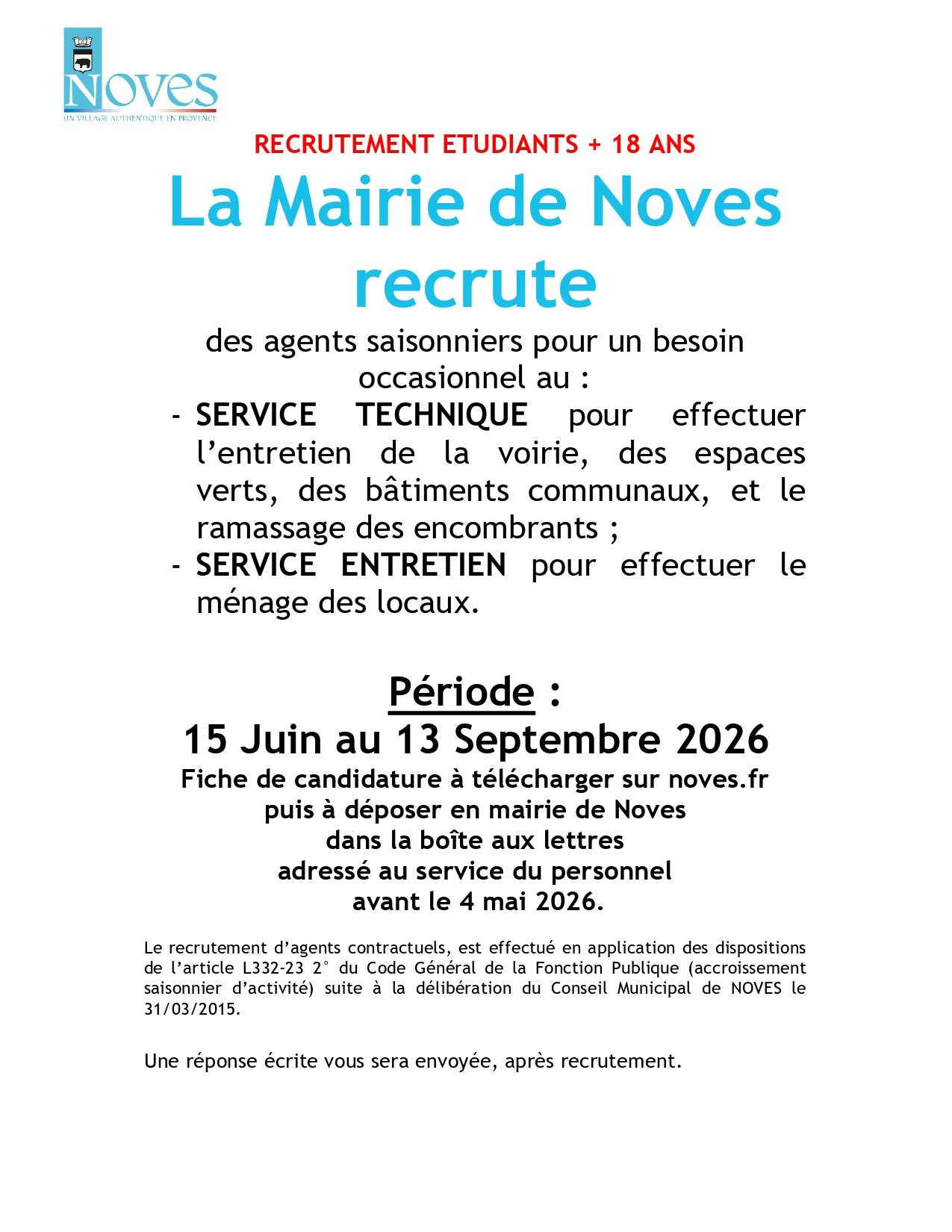 Recrutements d’agents saisonniers