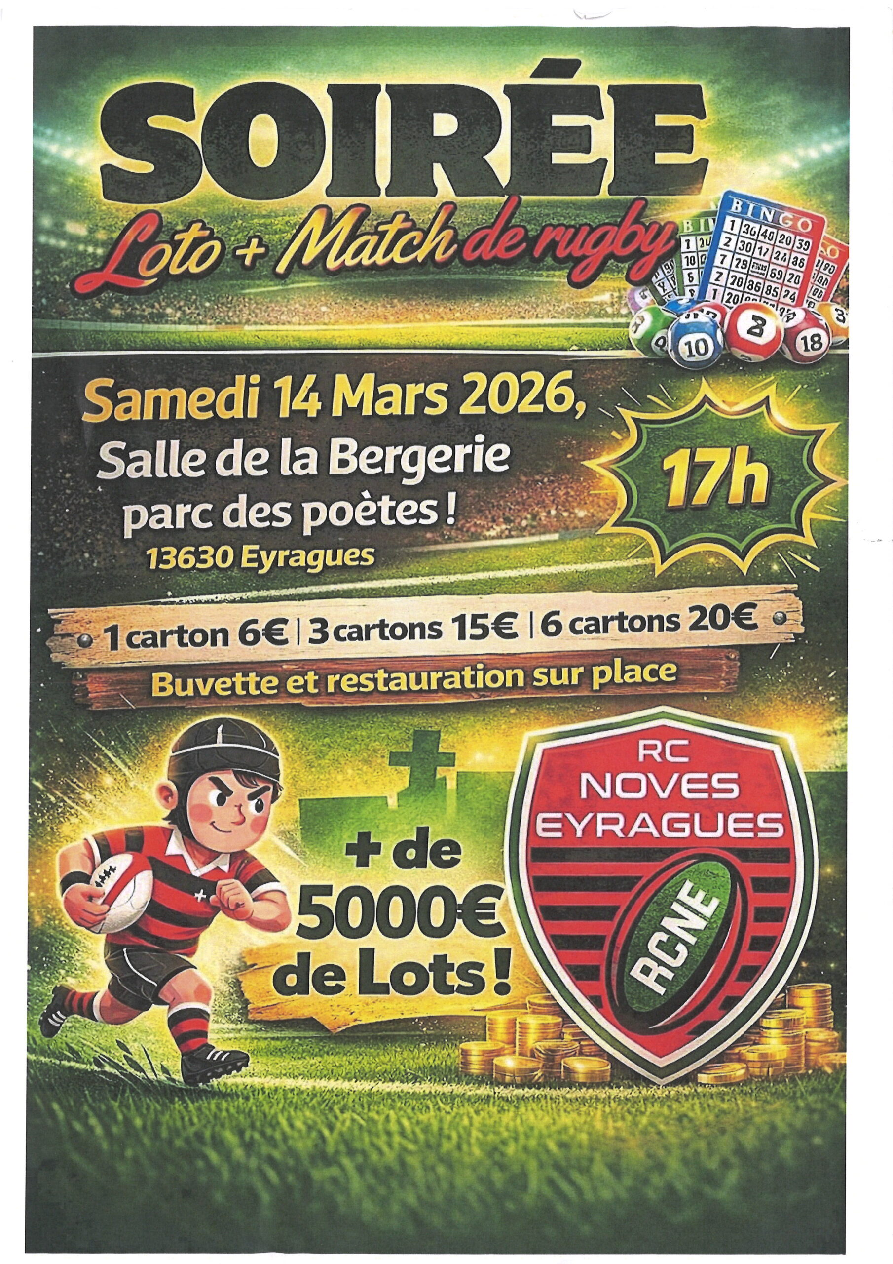 Loto, organisé par le RCNE, à 17h, salle de la Bergerie à Eyragues. Buvette et restauration sur place.